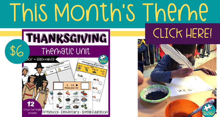 Unsure where to start? Grab my Thanksgiving Thematic Unit! Each of my thematic units has 12 different cross-curricular activities to get you started or to supplement your district curriculum such a Unique Learning System. These activities are low and no-prep and engaging! This month check out: